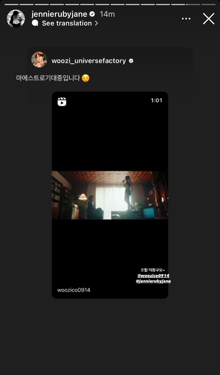 In response, Jennie reposted Woozi’s story, expressing her excitement for SEVENTEEN’s upcoming album with the caption, “Anticipating Maestro.”