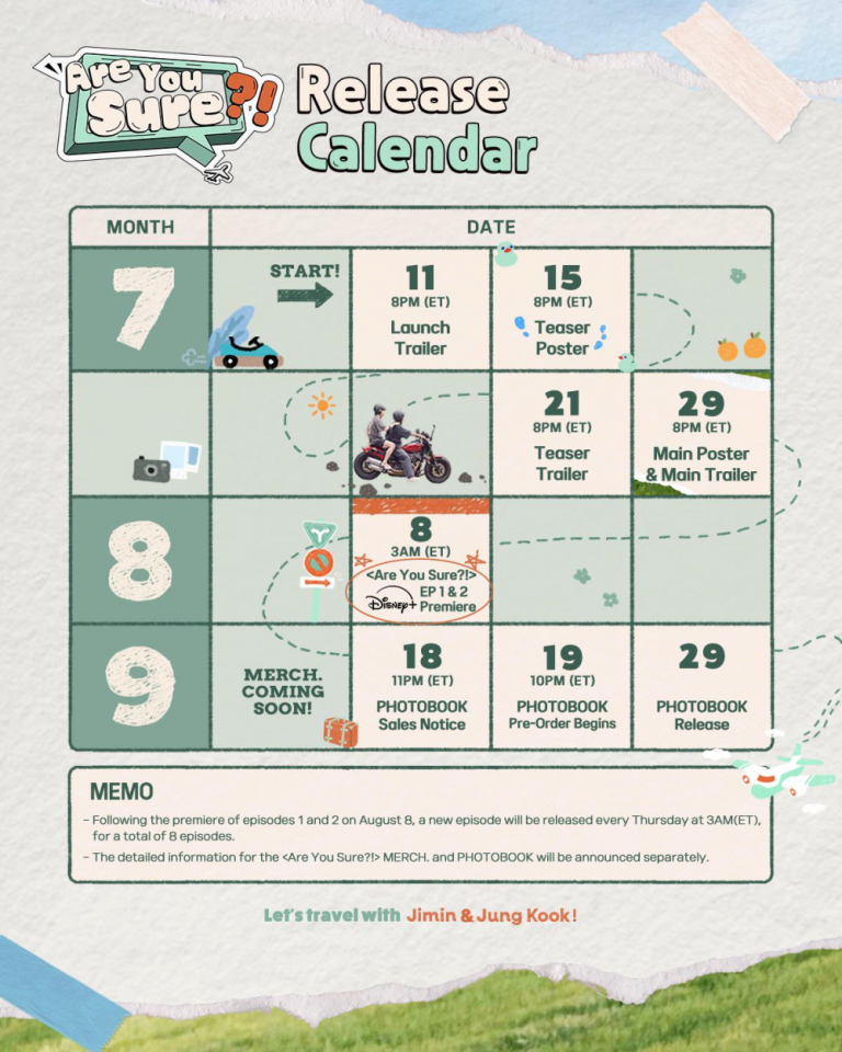 BTS’s Jimin and Jungkook have stirred excitement among fans with a calendar teaser for their upcoming unit photobook, ‘Are You Sure?!’. Released on July 10 at midnight KST, the teaser outlines important dates leading up…